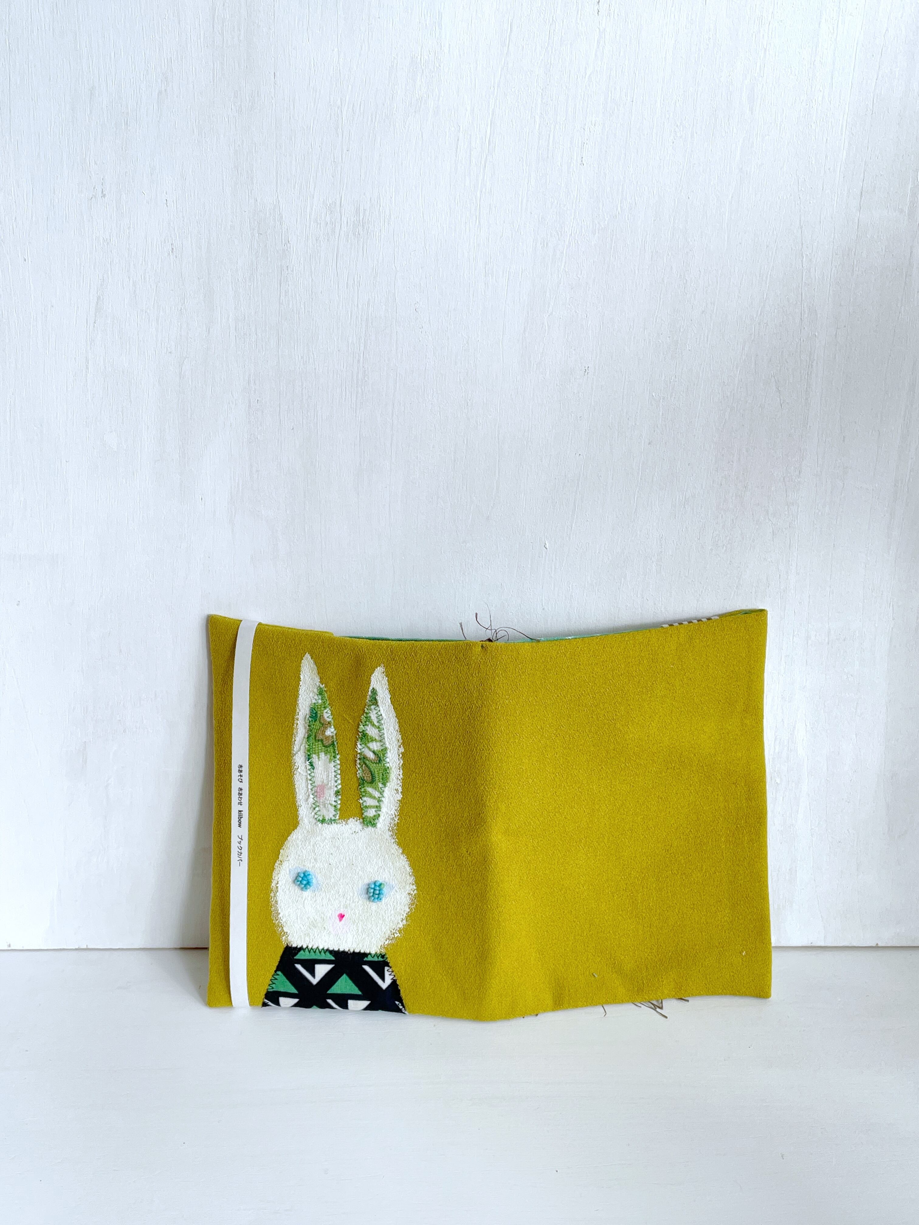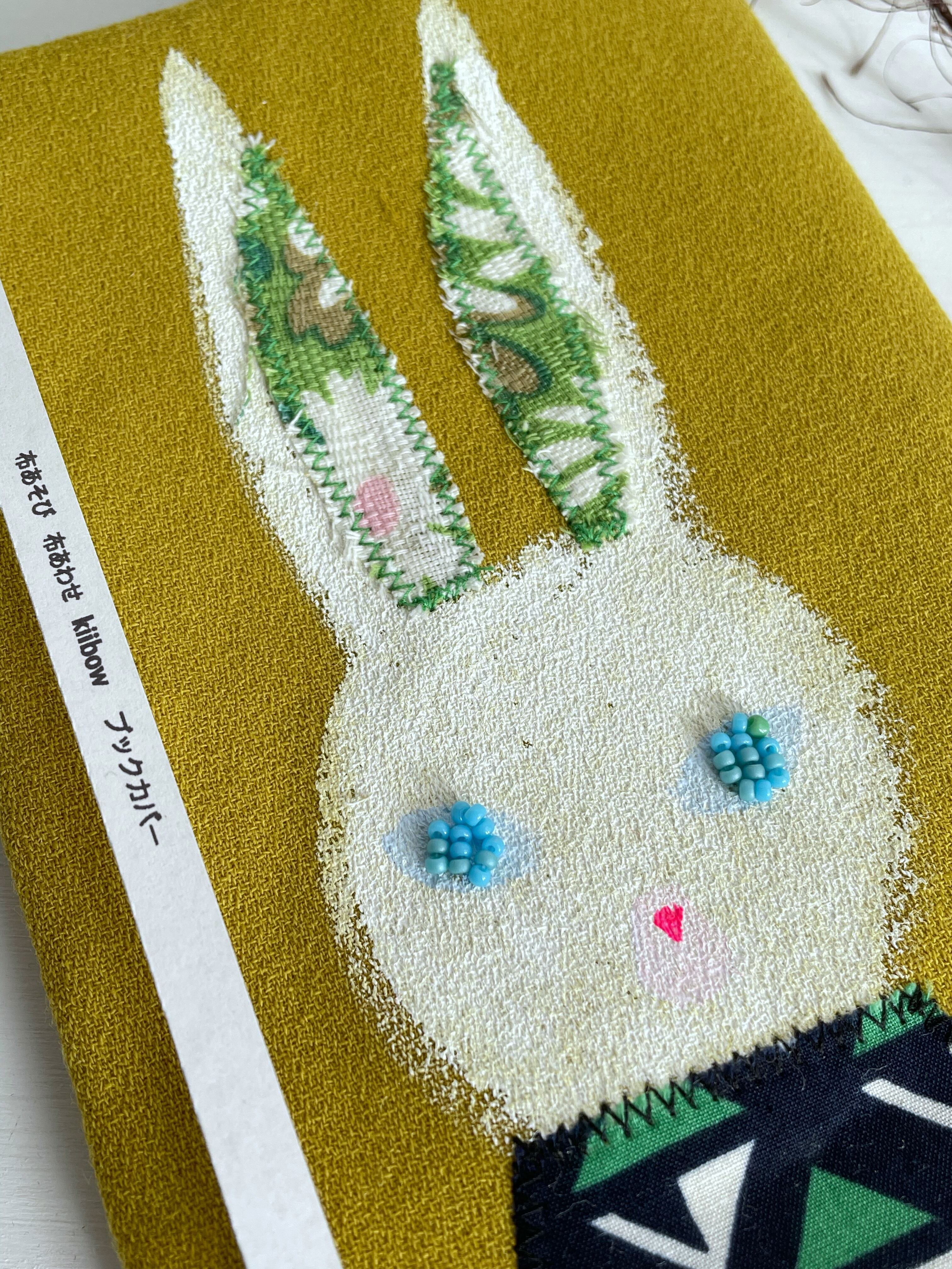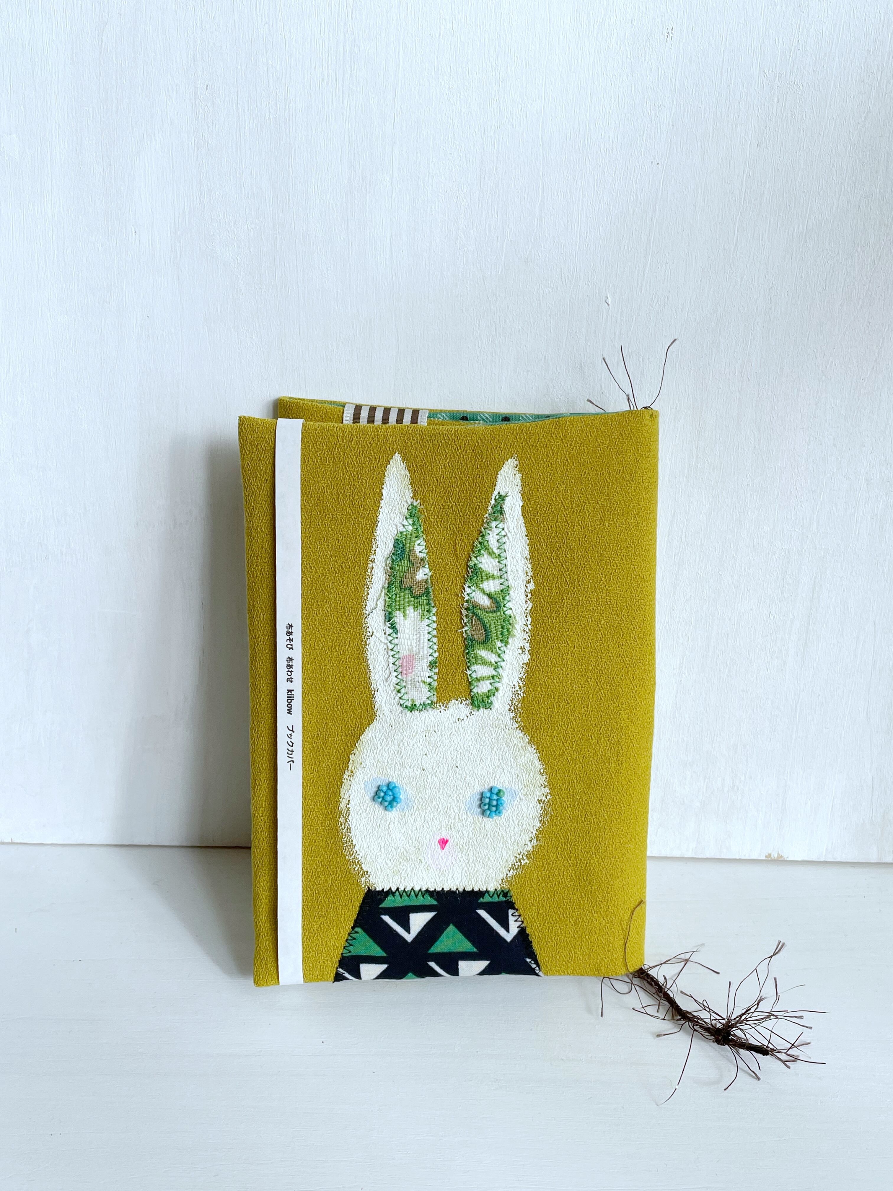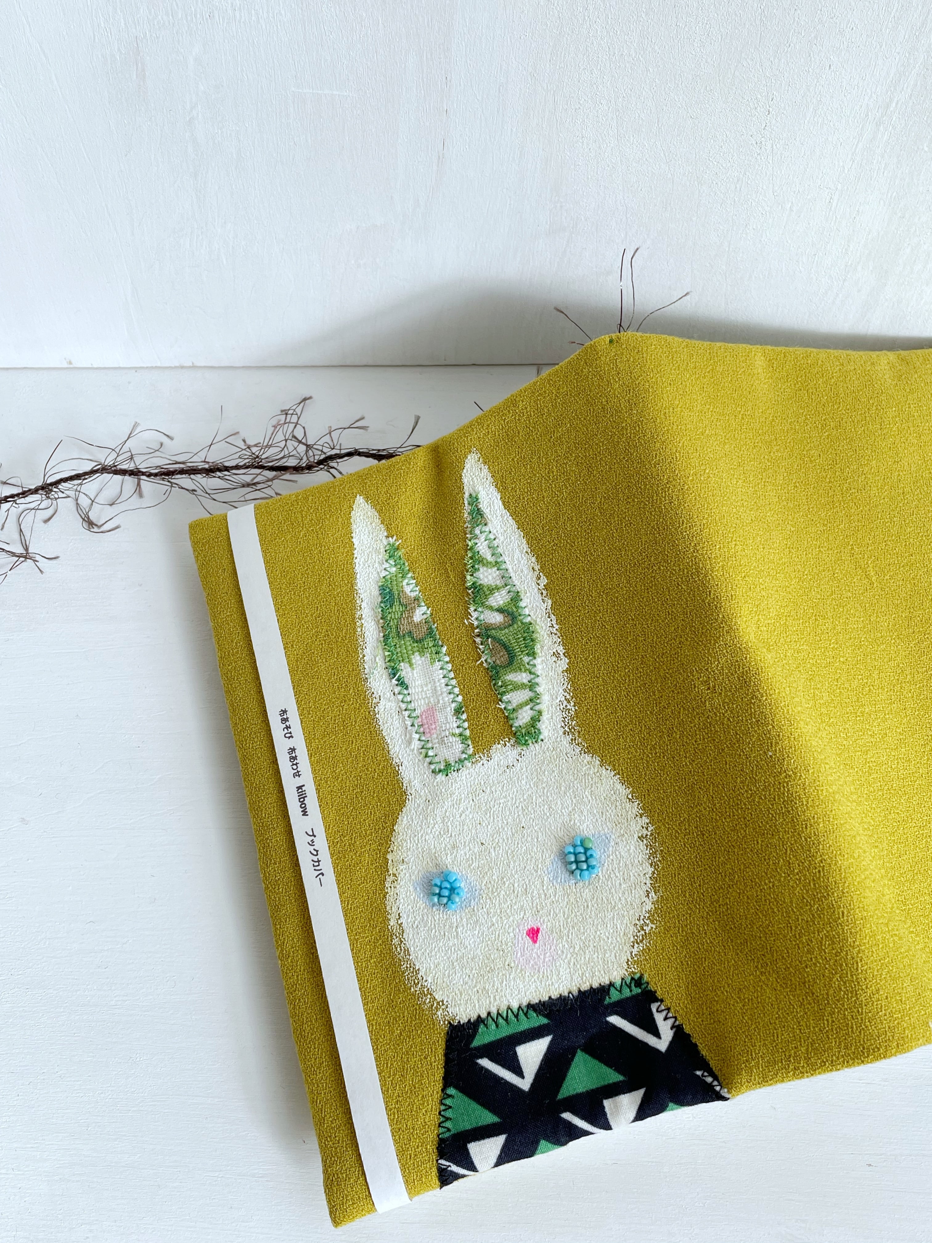 マスタードカラー うさぎブックカバー 文庫サイズ