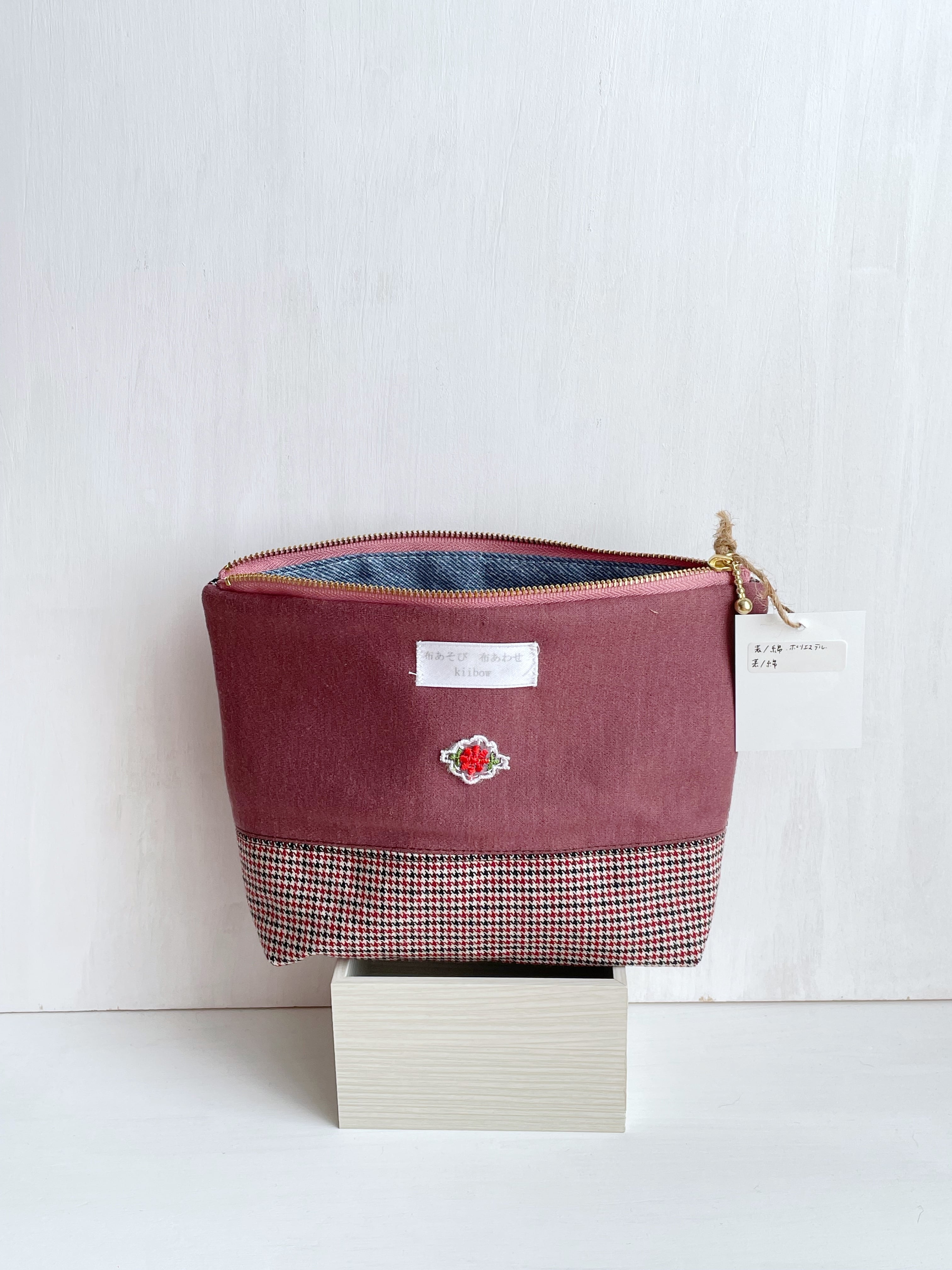 裏側はくすみピンクの生地と組み合わせ