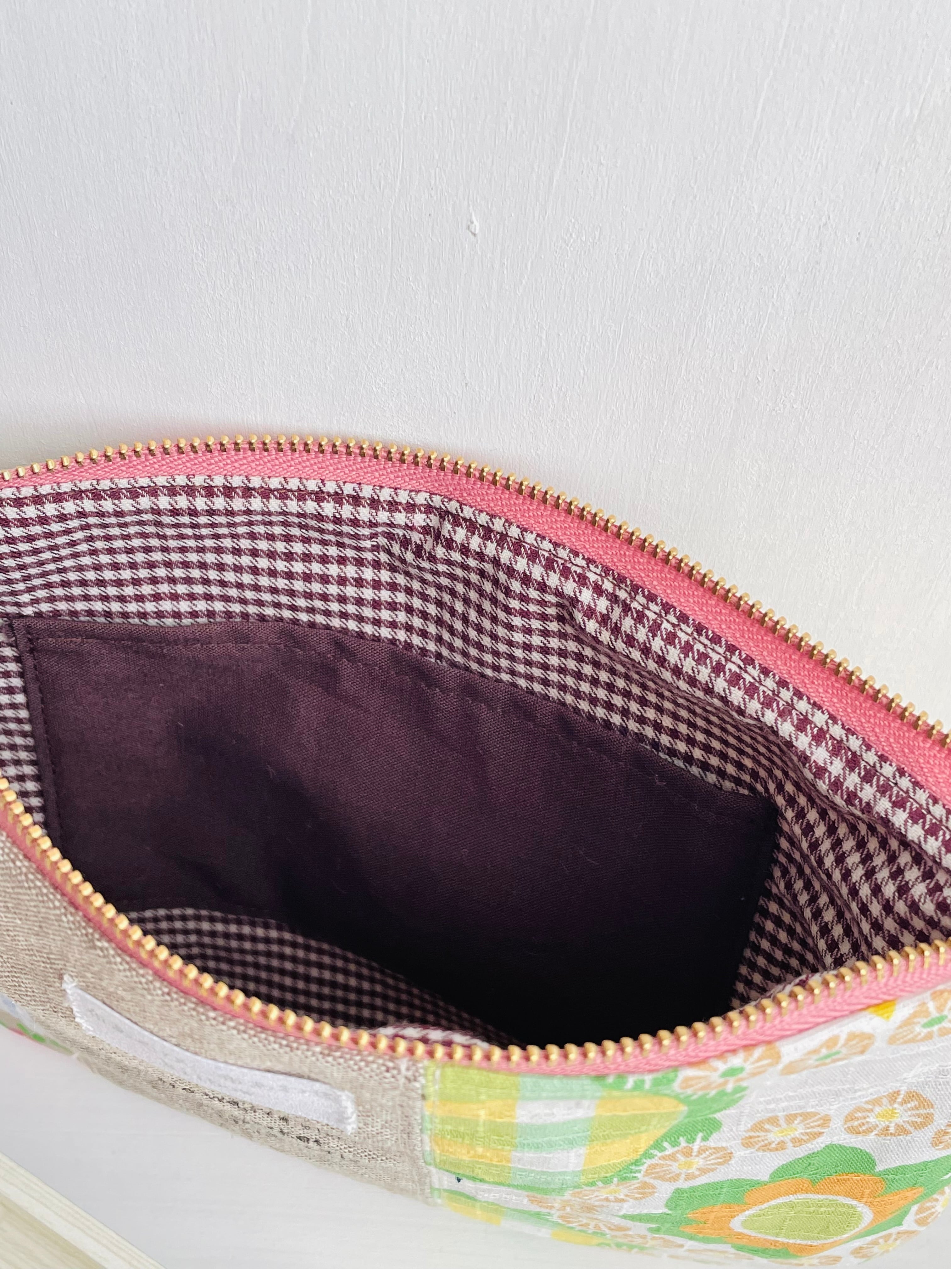 春に向けて、お花の柄の生地をメインに布あわせをして