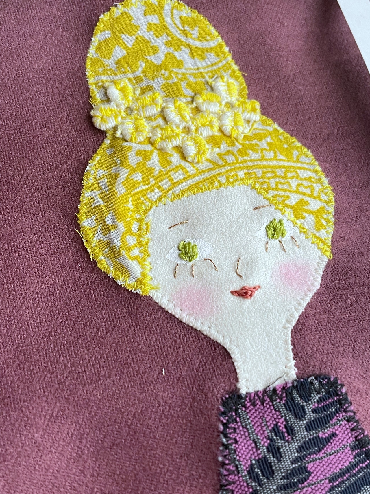 お団子ヘアの女の子をパッチワークしました。